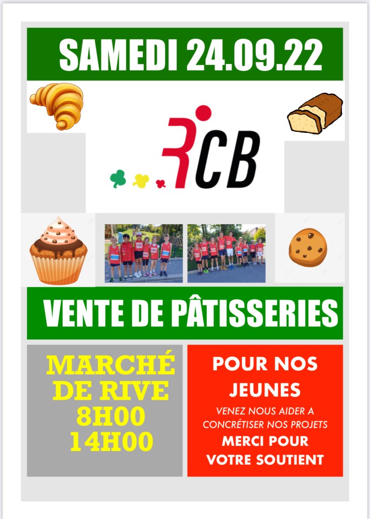 Venez nous soutenir Publié parrunningcb18 septembre 2022Publié dansNon classé VENTE DE PÂTISSERIES AU MARCHÉ DE RIVE – SAMEDI 24 SEPTEMBRE 2022 Partager sur : Cliquez pour partager sur Facebook(ouvre dans une nouvelle fenêtre) Facebook Cliquer pour imprimer(ouvre dans une nouvelle fenêtre) Imprimer Cliquer pour envoyer un lien par e-mail à un ami(ouvre dans une nouvelle fenêtre) E-mail Cliquez pour partager sur WhatsApp(ouvre dans une nouvelle fenêtre) WhatsApp J’aime chargement… Similaire
